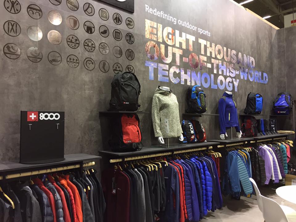 El objetivo de la presencia de +8000 en la feria es, seguir creciendo fuera de nuestras fronteras. En la Feria se mostrarán los nuevos productos con las últimas tecnologías en tejidos, como por ejemplo Windshield, una membrana que ofrece máxima resistencia al viento además de repelencia al agua y óptima transpirabilidad, lo que garantiza la realización de deportes altamente aeróbicos.