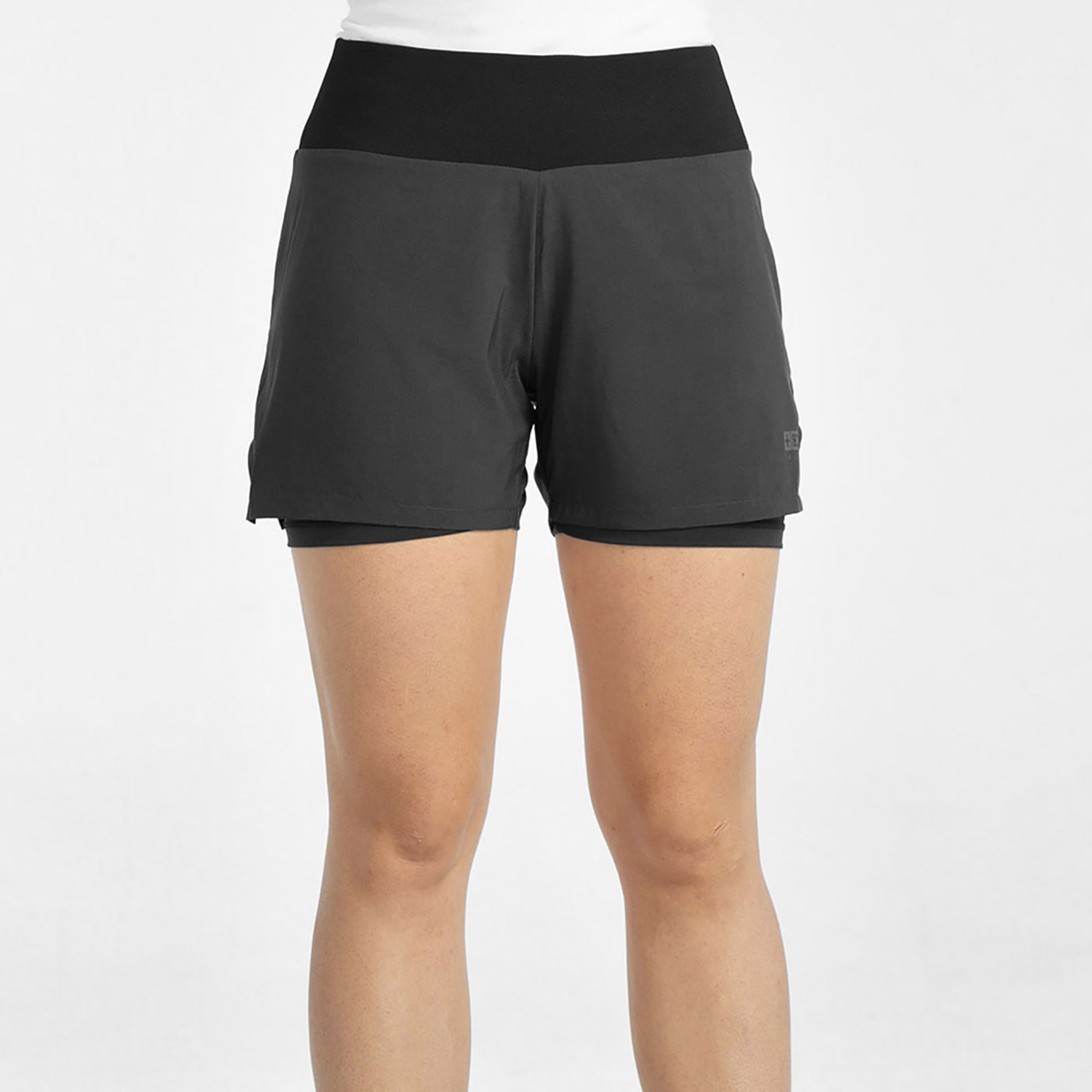 Short de actividad en tejido bi-elástico 92% polIéster-8% elastán · Cintura elástica ajustable con cordón · Bolsillo posterior con