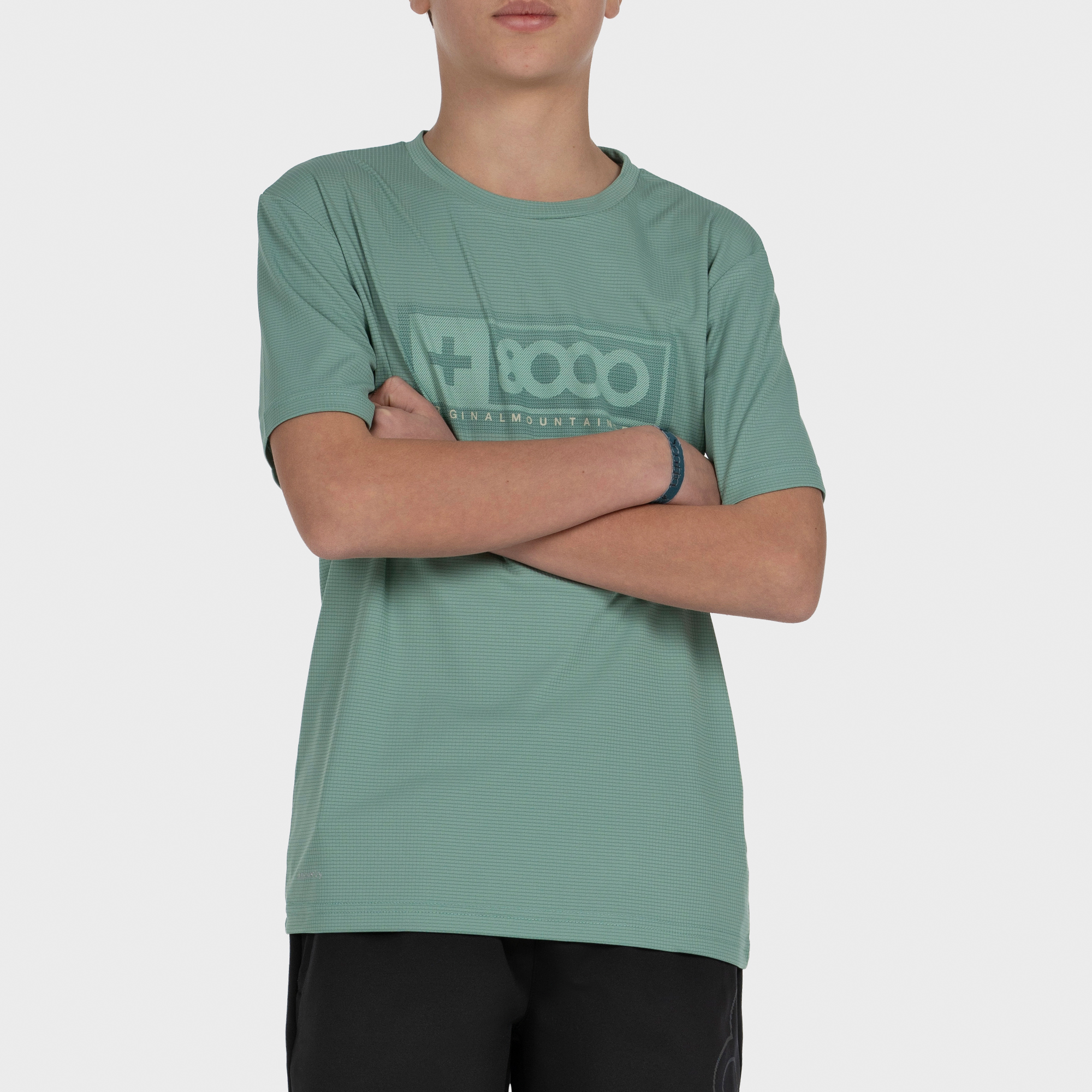 Camiseta de manga corta · Tejido principal, interlock ripstop, 100% poliéster con acabado secado rápido · Logo +8000 estampado en delantero · Standard fit.