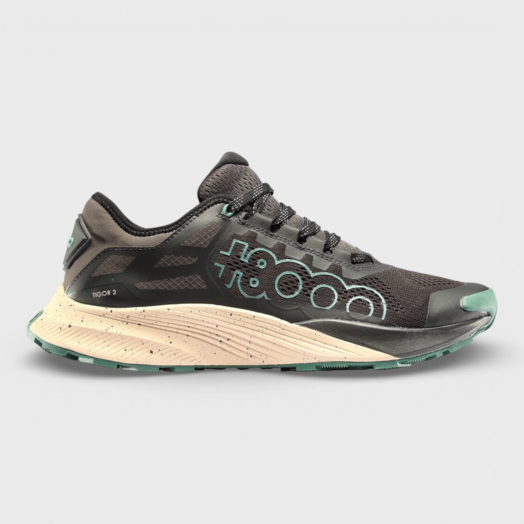 Destaca por su suela, que proporciona una gran amortiguación y que gracias a su diseño taqueado, nos aporta una tracción y un agarre óptimo. El corte es una combinación de nylon y lycra complementados con termosellados que evitan costuras innecesarias. Forro interior de mesh que aporta confort y mejora la transpiración. La construcción del talón y el empeine tipo «calcetín» ayuda al perfecto ajuste de la zapatilla.